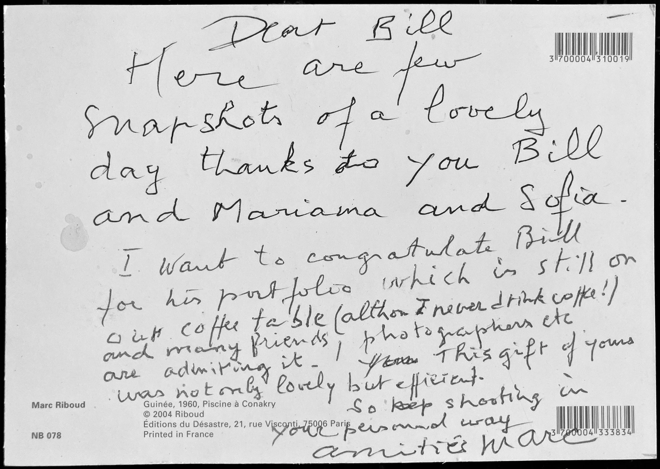 In a way I’m paying it forward for those who helped me do the same. While getting the workshop space ready - and going through a ton of odds and ends since getting back - I found postcards I received long ago from my own photo mentors, encouraging me in my strivings for a more personal vision. One is from the legendary French photographer Marc Riboud in 2007, before he passed away a few years ago. My wife and I had been lucky to become friends with him, this is from after visiting him in Paris with our then-infant daughter: