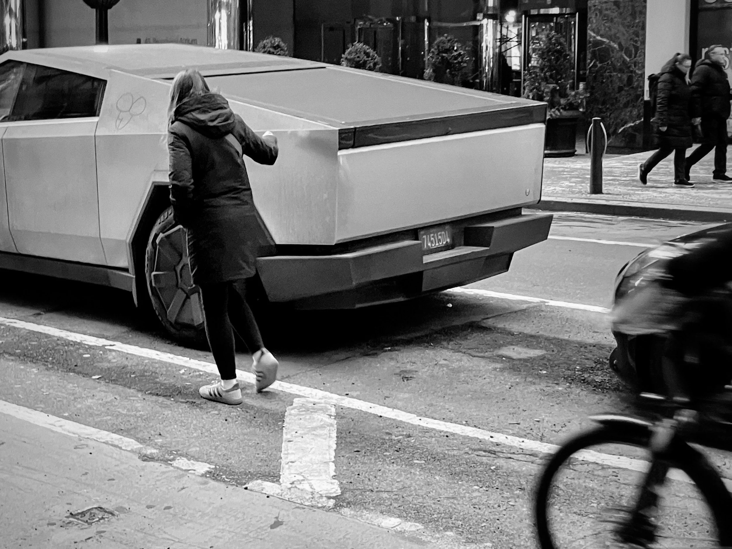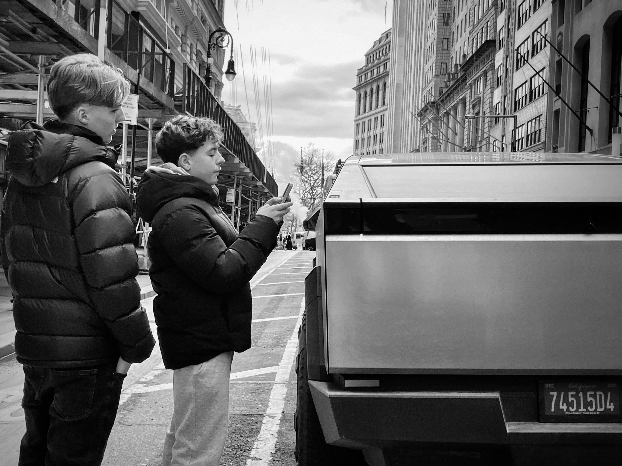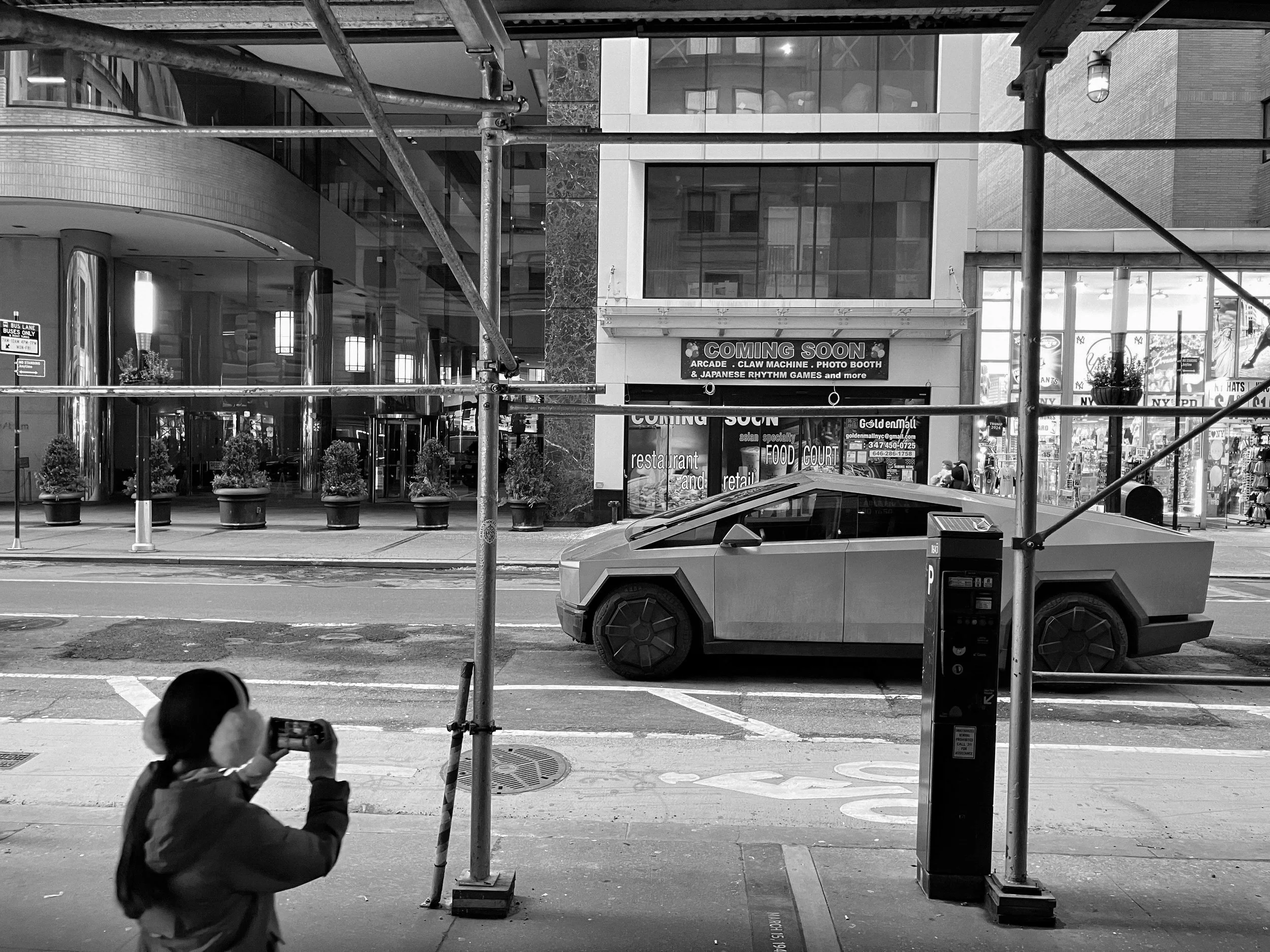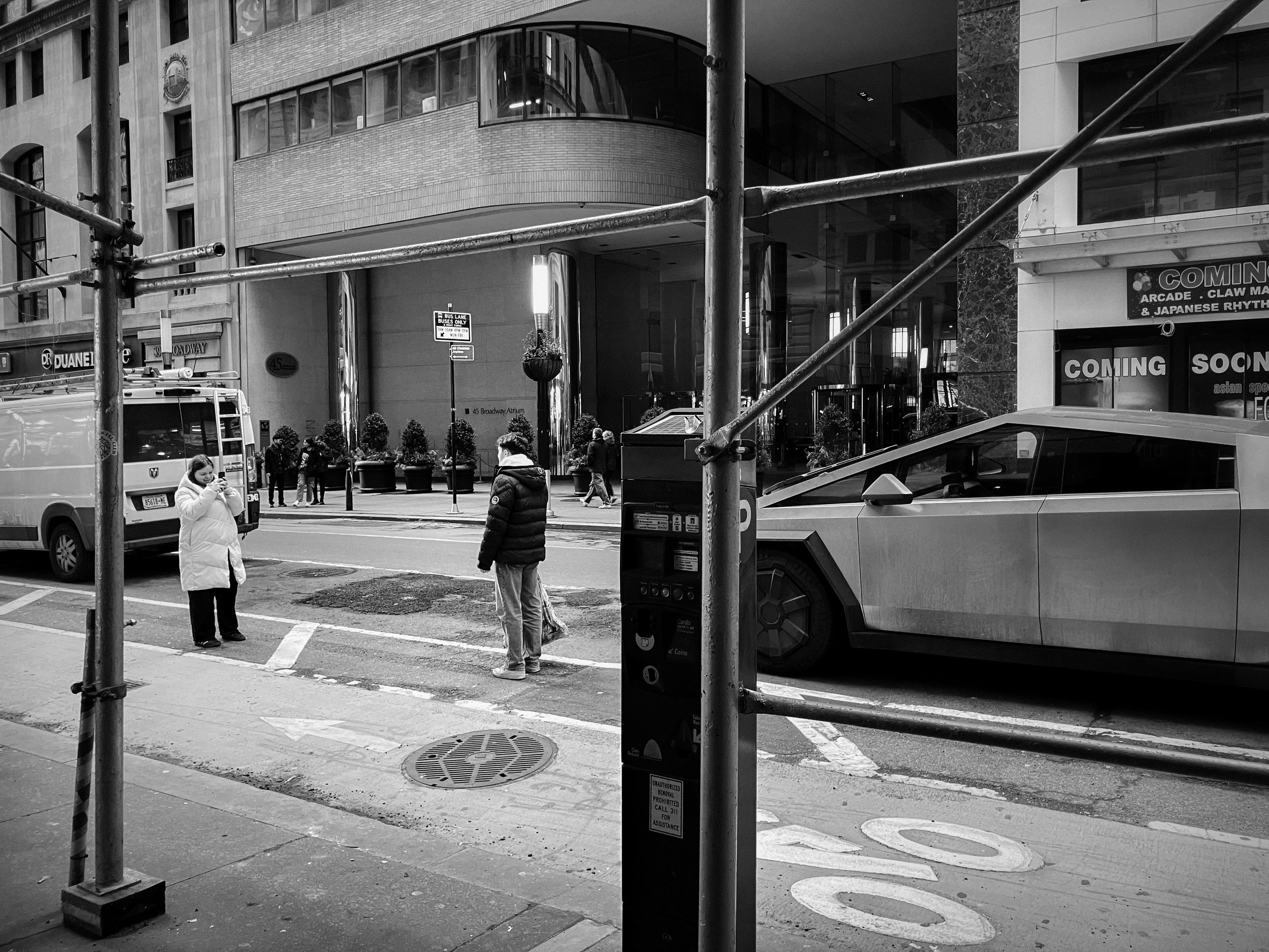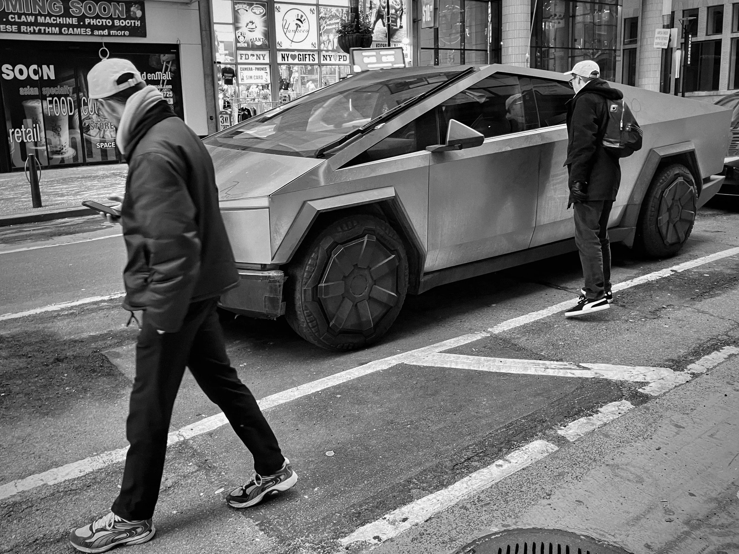 I had an up-and-back errand in NYC today. Most of my time was spent waiting, parked for a while behind this thing. Which I soon noticed became a kind of bizarre shrine for the passing tourists. So I pretended I was interested in it too but took photos of them. The Europeans were especially drawn to it.