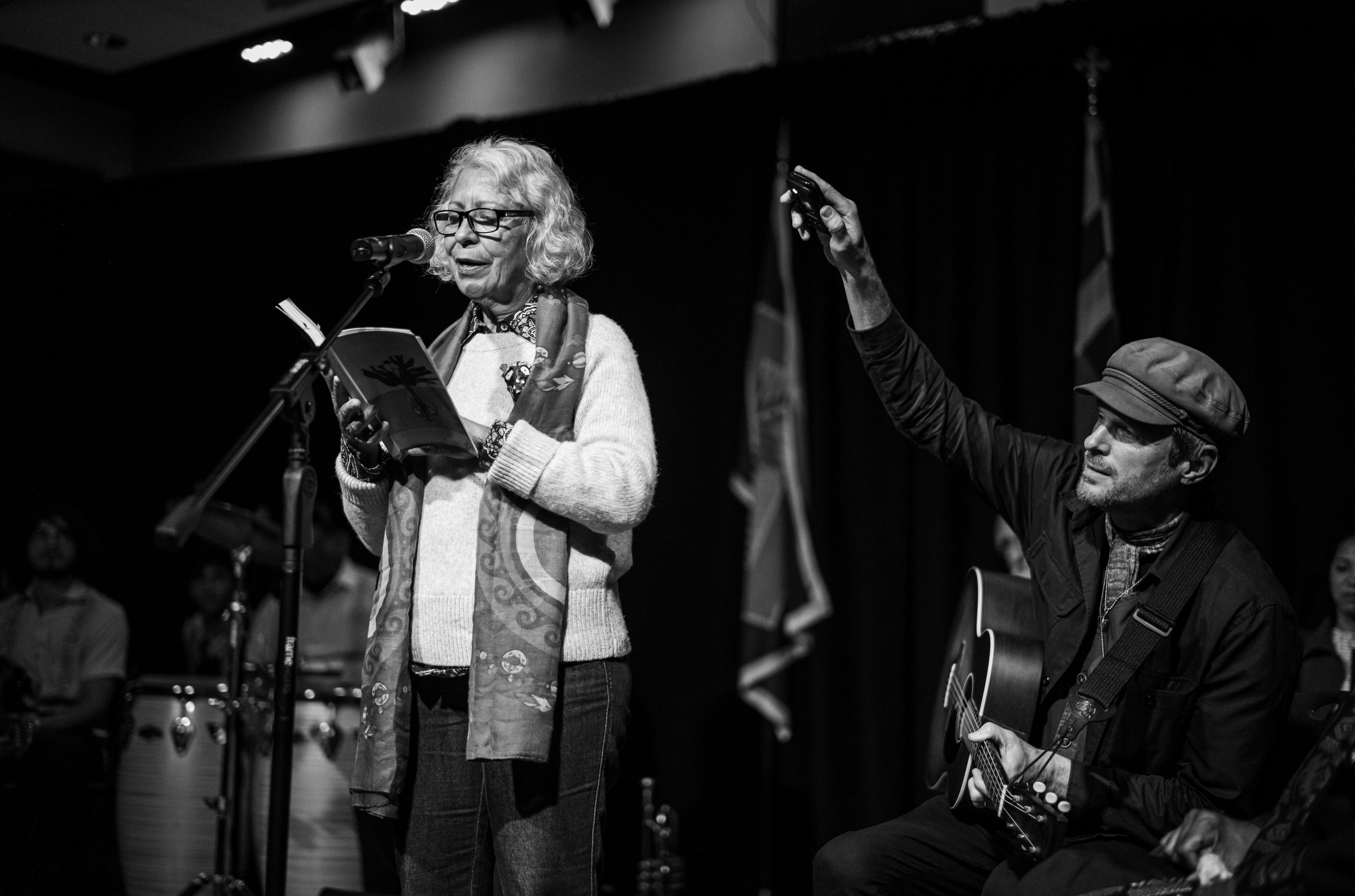 It was kind of a speed-round format, each performer was given basically one song/poem - ok, a few pushed it a bit - and we had the performers on stage the whole time while waiting their turn. It created a nice feeling of the performers being together with each other, and with the audience. Los Locos provided between-act ‘bridge’ music.