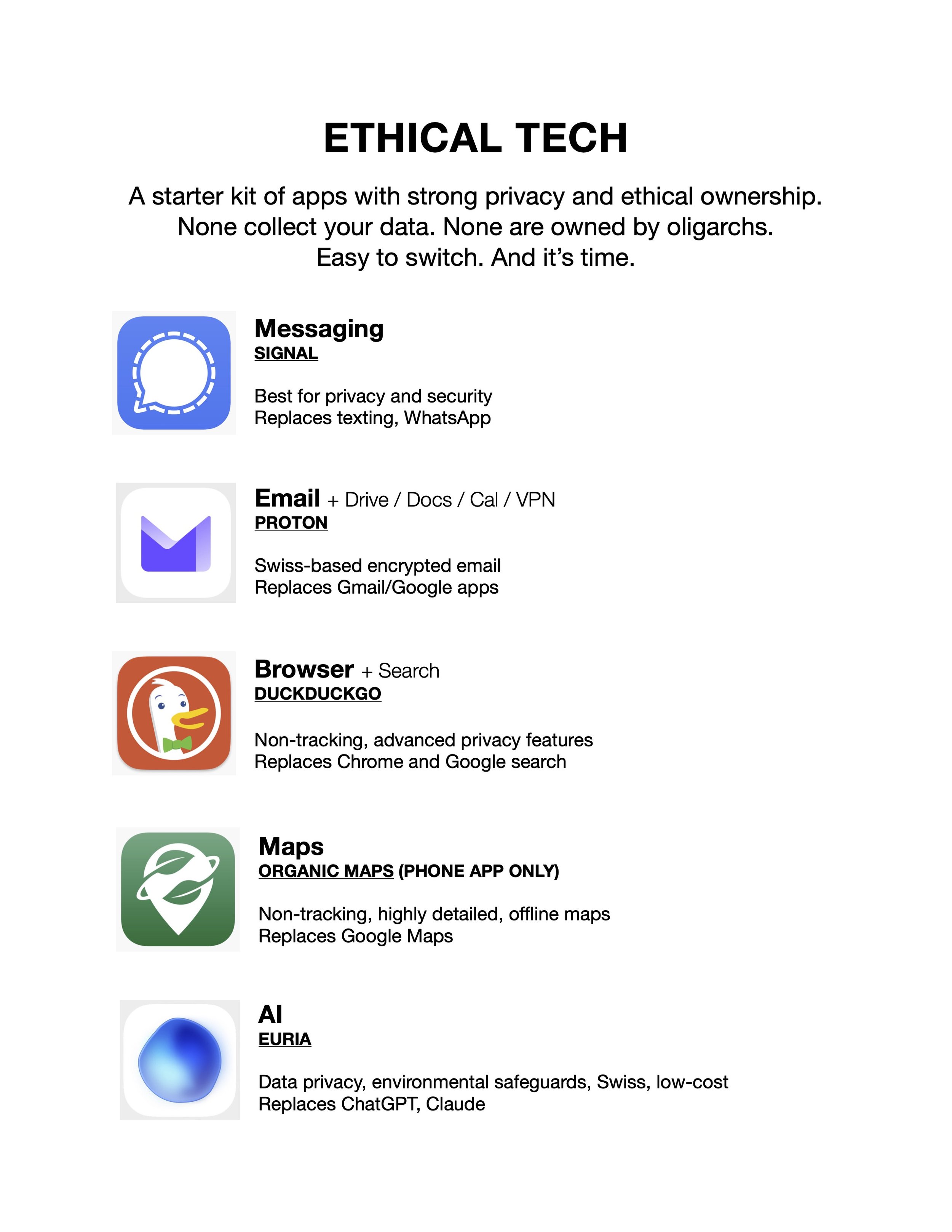 If data is the battlefield, choosing more privacy-centric apps is one of the most important things we can all do right now. Data they don’t have can’t be misused, surveilled, sold, or stolen.
